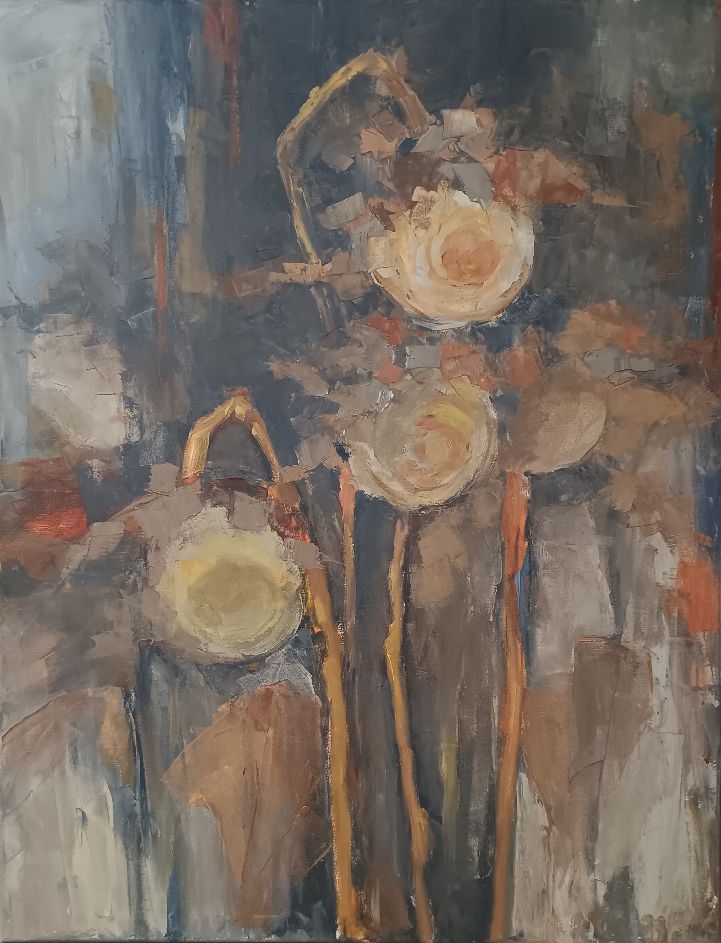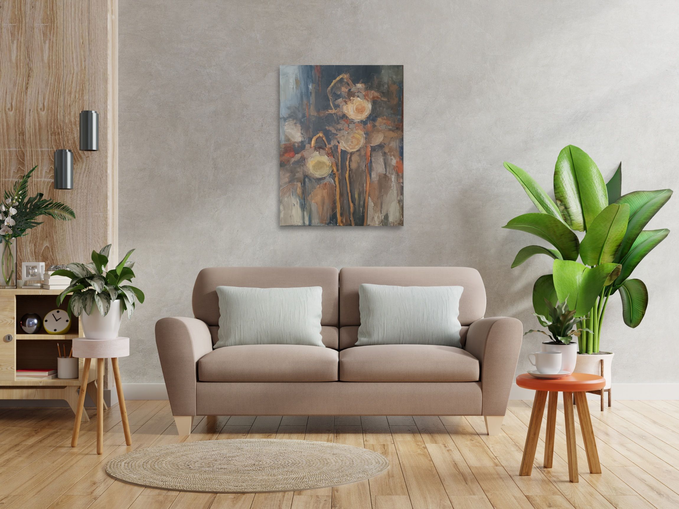 This painting is part of my recent solo exhibition held in my home town and presenting 38 paintings in the theme sunflowers. With this exhibition, I once again say how much I love the earth and its way of existence. All summer I pass by the sunflower field twice a day. I observed their life. I reflected. The sunflower lives only 5 months and experiences so many states, each of them in its true meaning and conscious passion. I saw steadfastness, dedication and confidence. The parallel with our life was inevitable. What do we do with all this time we have. Do we realize how much time we have for so many things. What do we use or waste time for. What states do we fall into. Do we know that we are in them. Hence the name Stops. Because this is how we go through our lives. In a series of stops. And each of them has its own and independent meaning. Every period or even moment, every person we meet, carries something, has a role, has the right time. We stop somewhere or with someone. We stop in some feeling, in some thought, in some state. Do we understand how these states build us. How do we react to them and do we allow them to define us? Do we become them? Do we see how they change us or the people around us? That's why most of the paintings here have names for states. That was my way of making sense of them. Others have names and reflect types. They are permanent states or character traits, so to speak. And I found them in the different stages of the sunflowers. That was a lot of fun. This original oil painting is made on stretched cotton canvas. Size is 70x90cm. Depth 2 cm. Canvas is gallery wrapped and painted on the sides, so the painting could be hang as it is without a frame if preferred. The painting will be sent safely packed within 4 working days after the purchase. A certificate of authenticity will be enclosed.